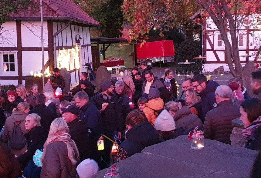 Nach dem Gottesdienst auf dem Kirchhof, findet der Martinsumzug mit Fackeln und Laternen statt, begleitet durch die Feuerwehr, danach schließt sich das gesellige Beisammensein auf dem Hof vor dem Gemeindehaus mit Glühwein, Kinderpunsch und Bockwürstchen an